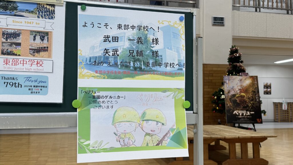 映画『ペリリュー -楽園のゲルニカ-』の学生向け特別上映会を企画・運営しました。上映会を実施した北広島市立東部中学校は弊社代表・矢武兄輔の母校です。