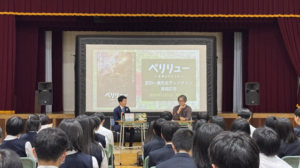 行われたイベントでは、原作・共同脚本を務めた北海道岩見沢市出身・武田一義さんが登壇し、鑑賞した生徒たちとの質疑応答を交えながら、作品制作の背景や取材の歩みを紹介する時間となりました。